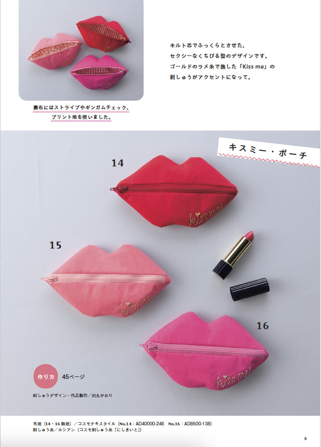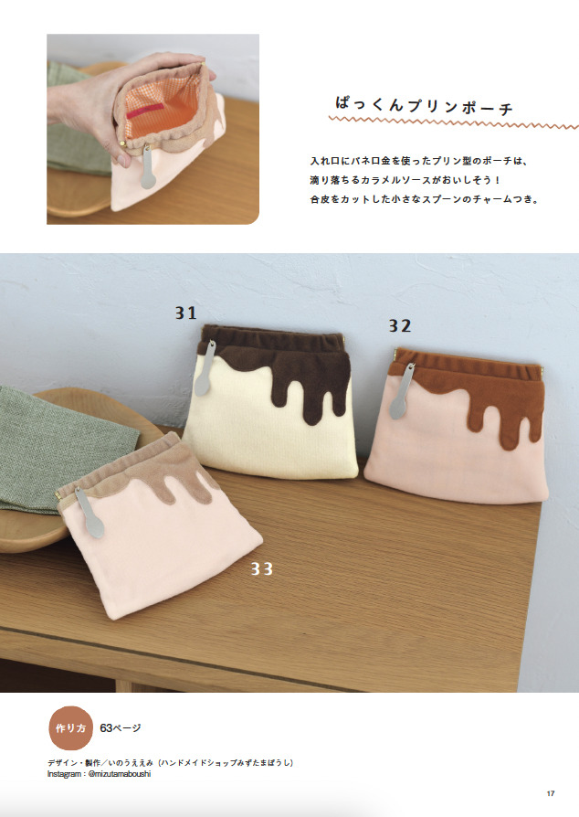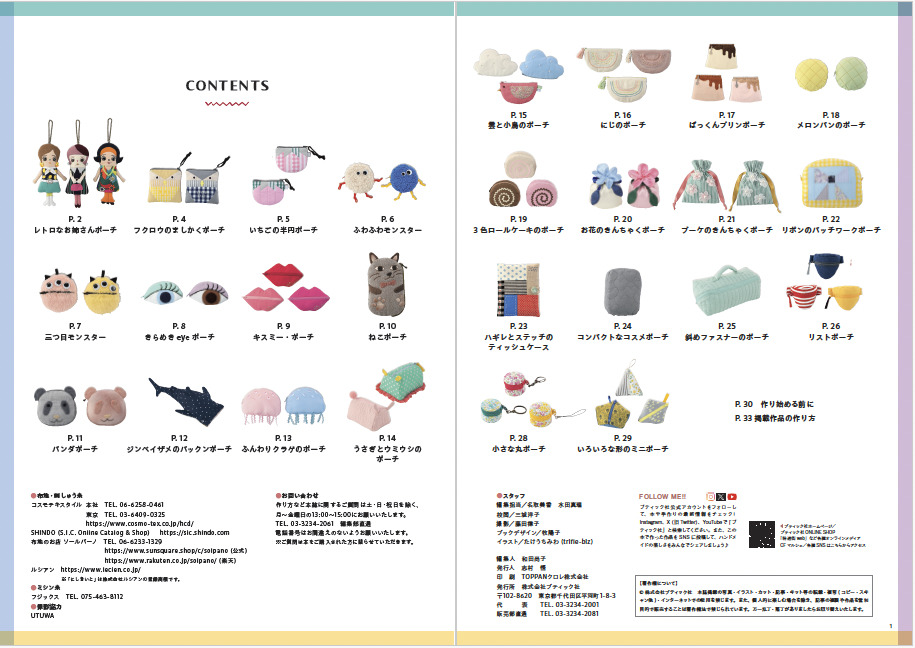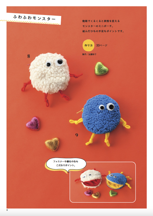 作って楽しい、使ってうれしいポーチを55点掲載。スイーツや動物、海の生き物からモンスターまで見ているだけでワクワクするようなデザイン、また使って便利なアイテムを掲載。