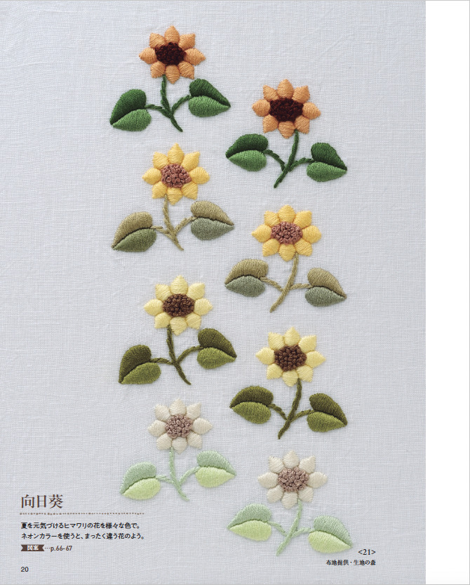 鮮やかな刺繍糸で植物を刺すハンガリーの「カロチャ刺繍」を、オリジナリティあふれる四季の図案や色使いで表現し、日本の風景に合うデザインに落とし込みました。本書の図案はカラーバリエーションも魅力。自分好みの色使いで楽しんでください。ワンピースやヘアターバン、がま口、バッグなどの仕立てものの作り方も紹介します。