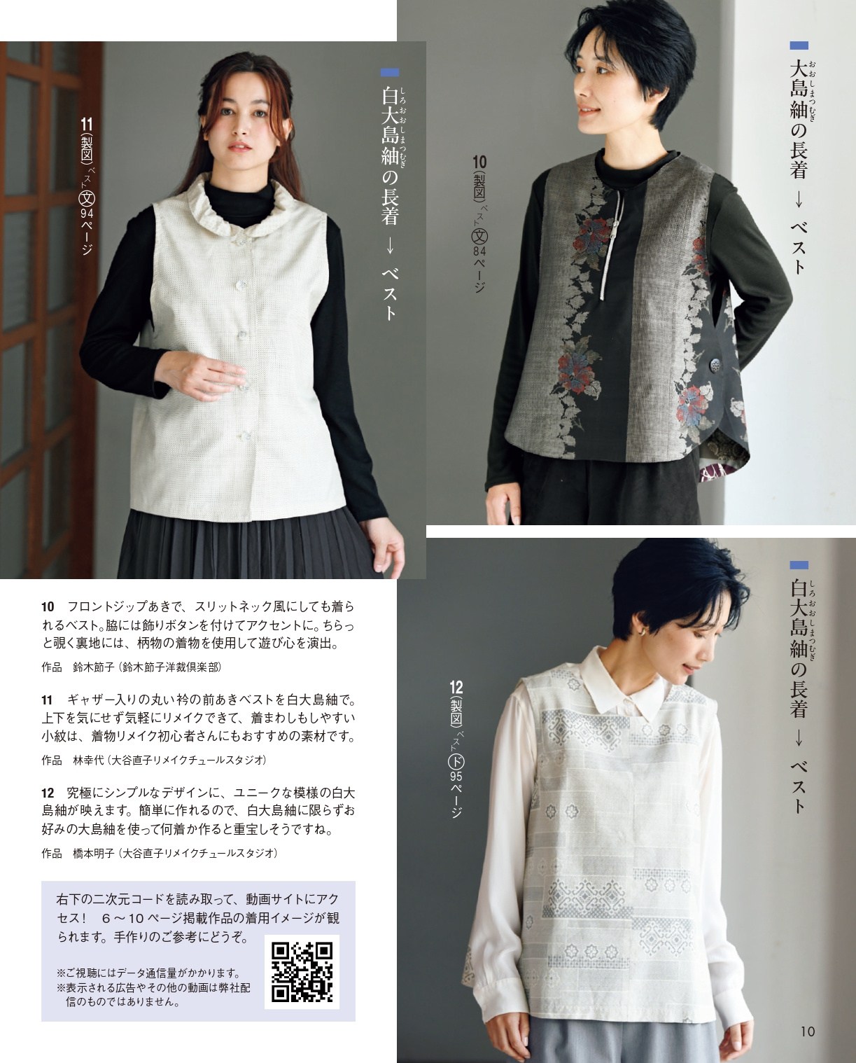 「モダンなリメイク提案 大島紬を私だけの一着へ」のテーマの作品をスタッフが着用してご紹介しています。作品作りの参考にしてみてくださいね