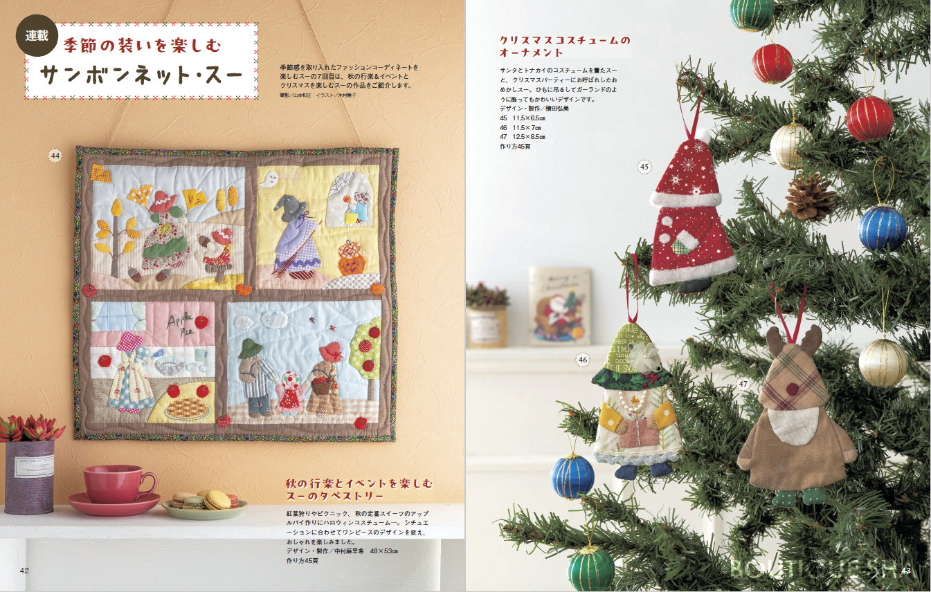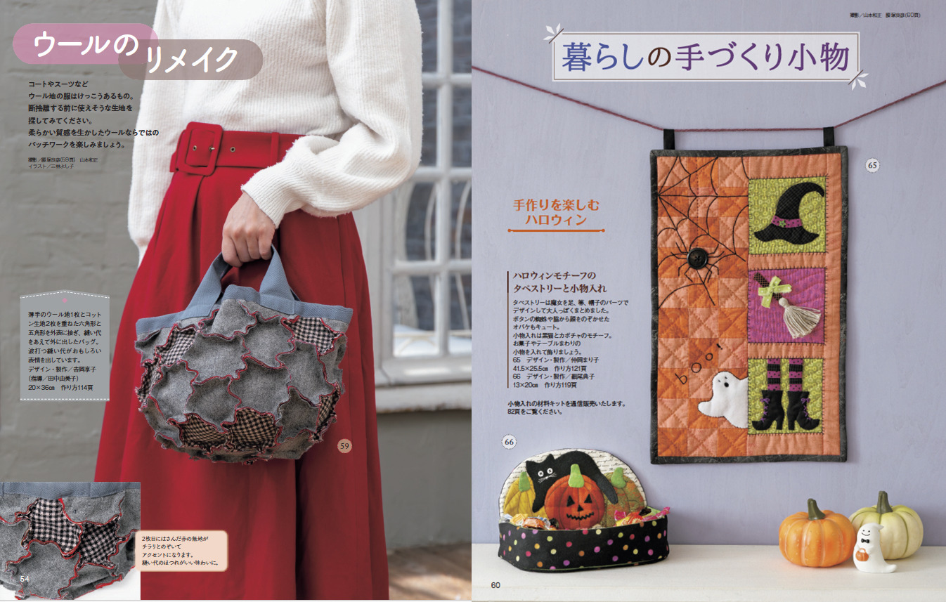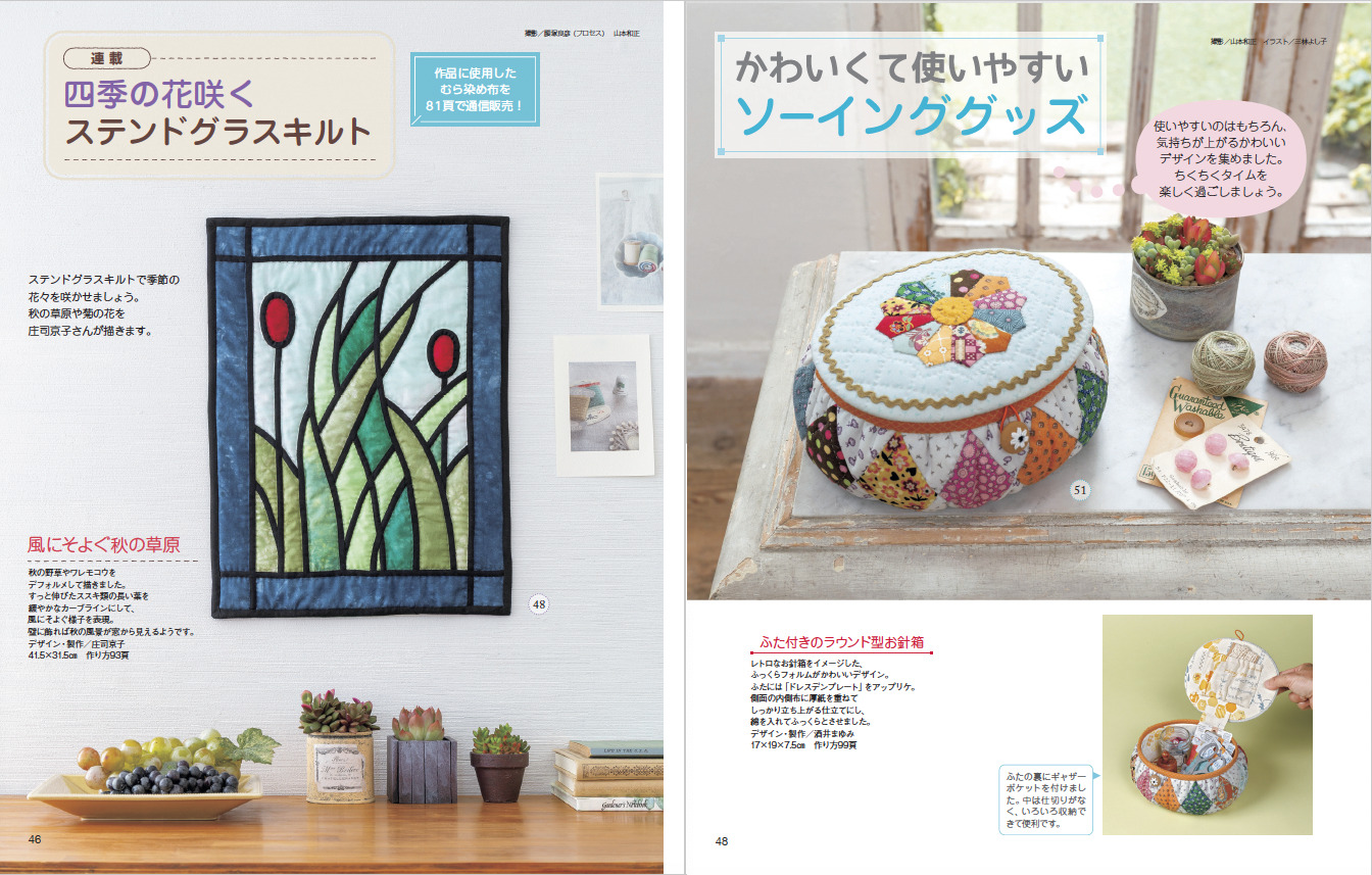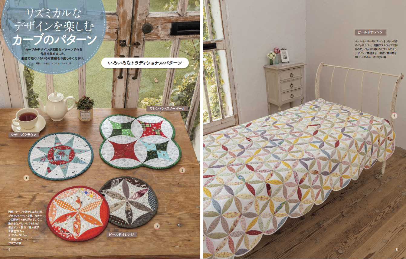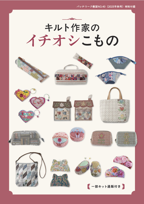 特集のカーブパターンでは美しい模様のキルトを掲載。クリスマスキルトや新連載のミシンキルトも見どころ。40号記念の別冊付録付き。