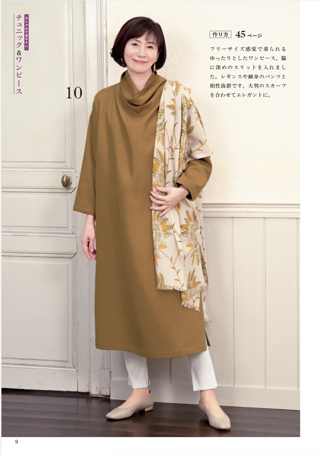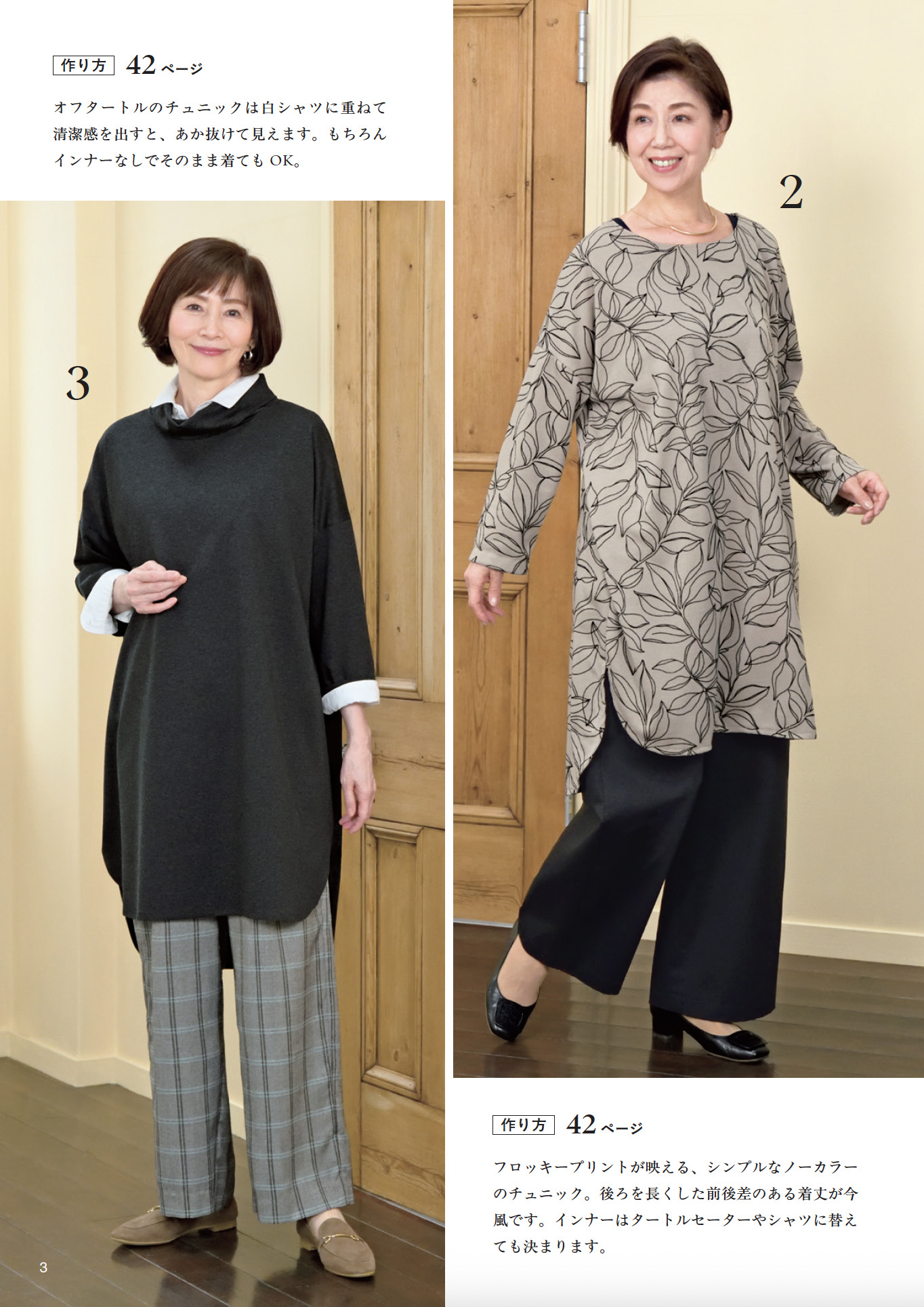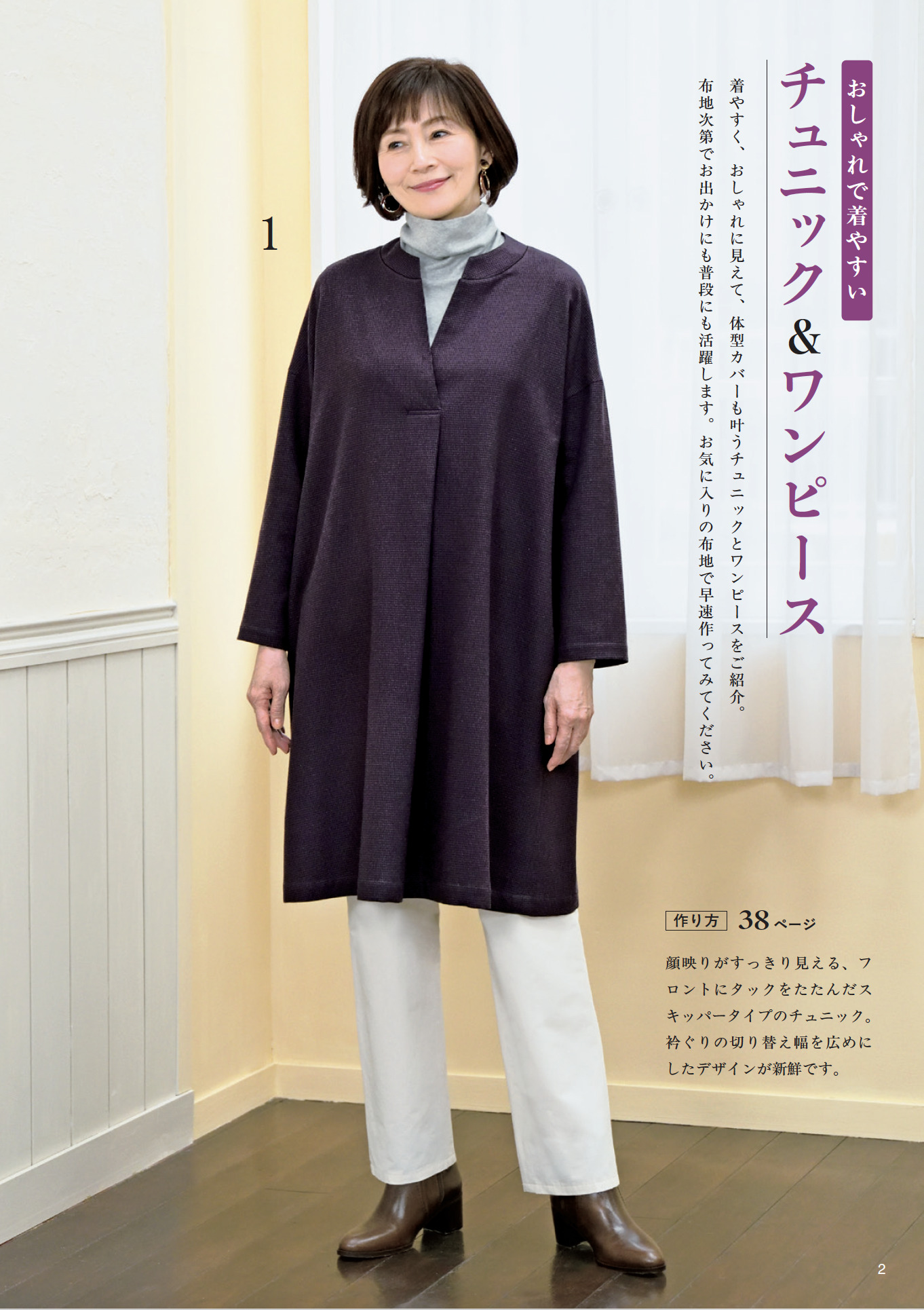 デイリーからお出かけまで、さまざまなシーンで活躍する秋冬服を型紙つきでご紹介。チュニック、ワンピース、アウター、ボトムなど、今どきの大人世代に向けた、豊富なデザイン満載で、全41点。S・M・Lの3サイズ展開。