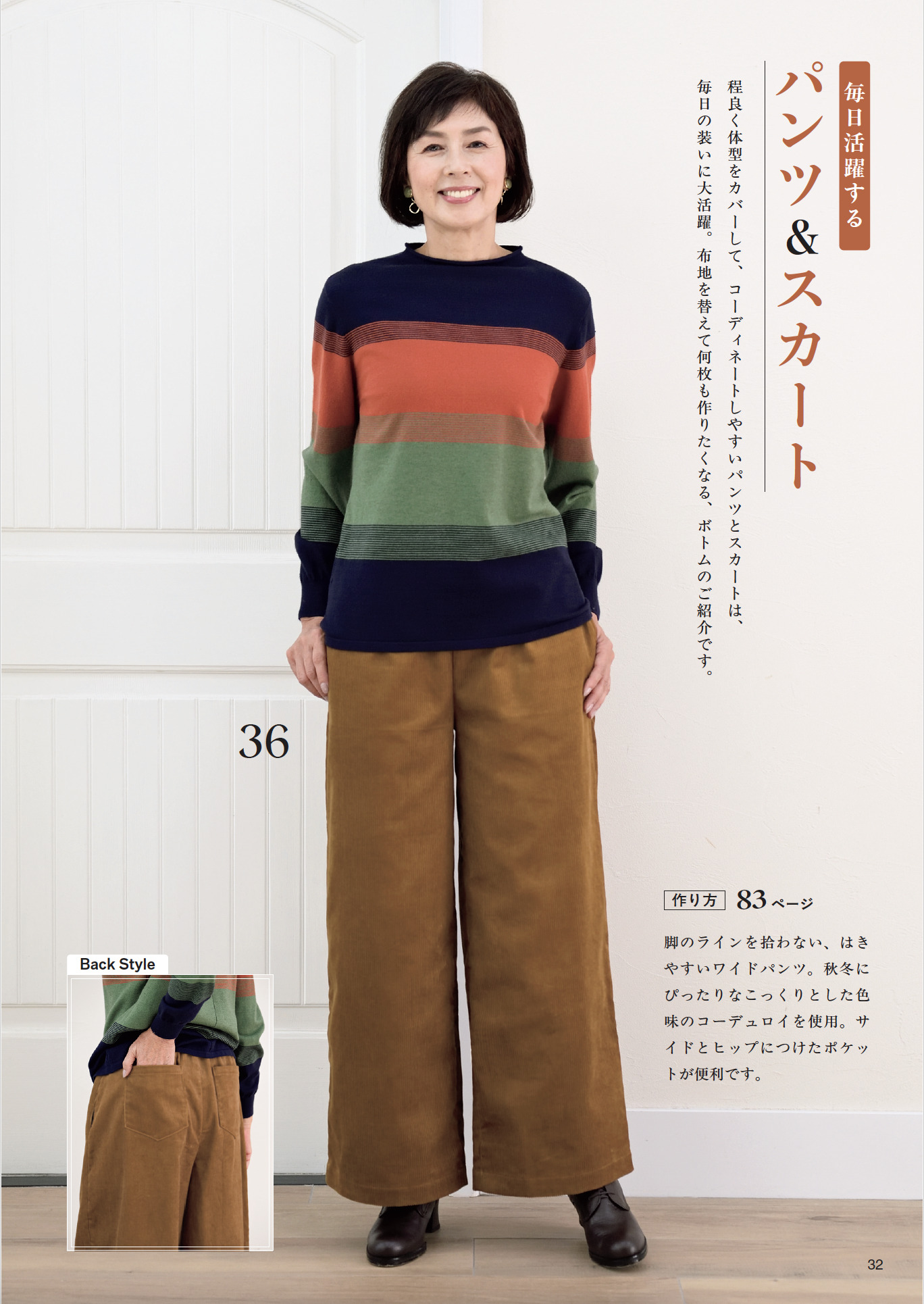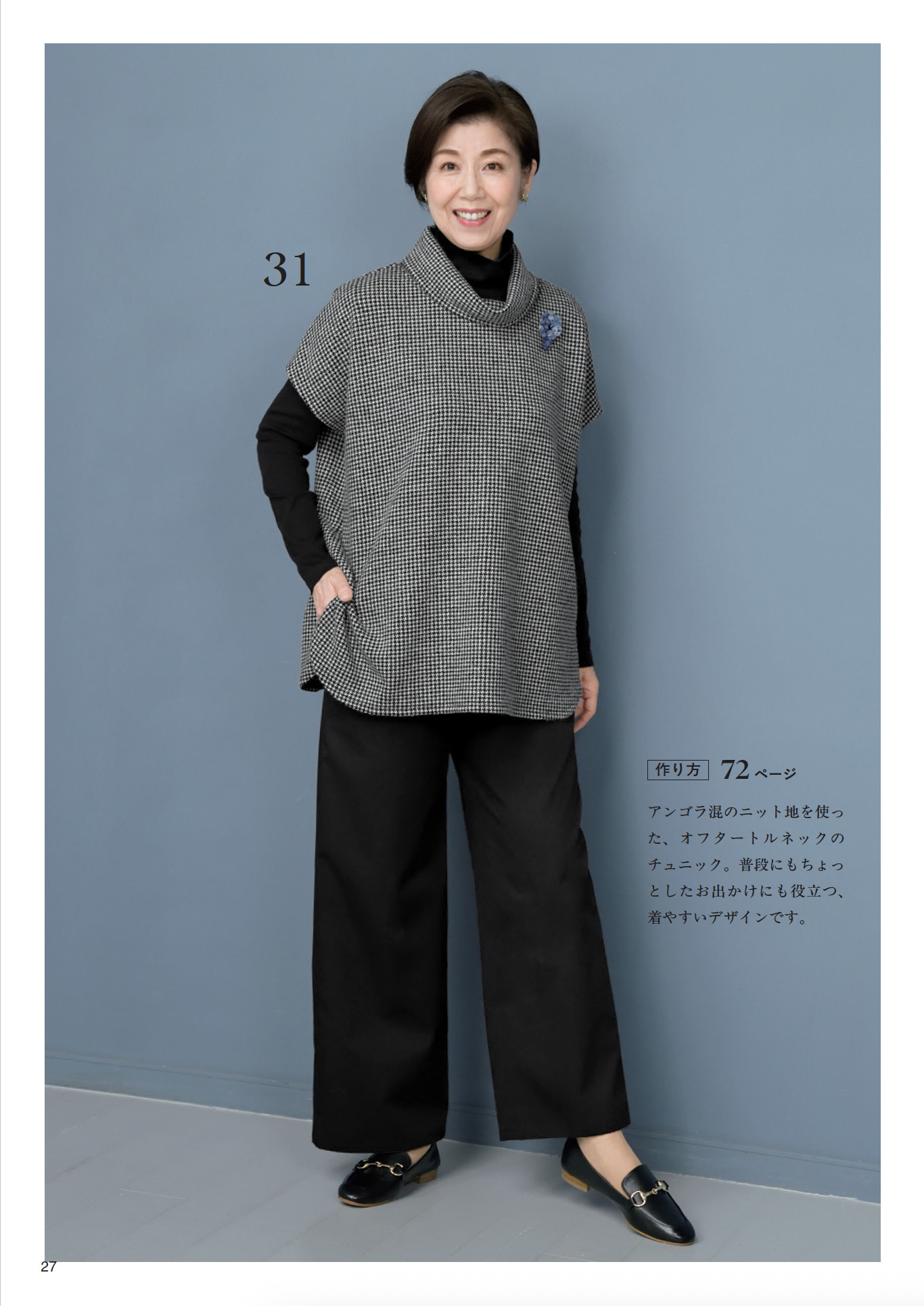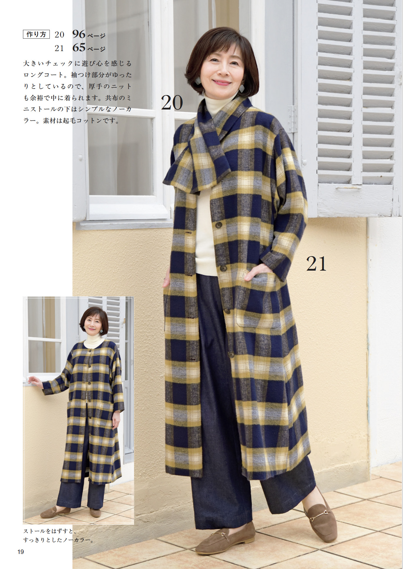デイリーからお出かけまで、さまざまなシーンで活躍する秋冬服を型紙つきでご紹介。チュニック、ワンピース、アウター、ボトムなど、今どきの大人世代に向けた、豊富なデザイン満載で、全41点。S・M・Lの3サイズ展開。
