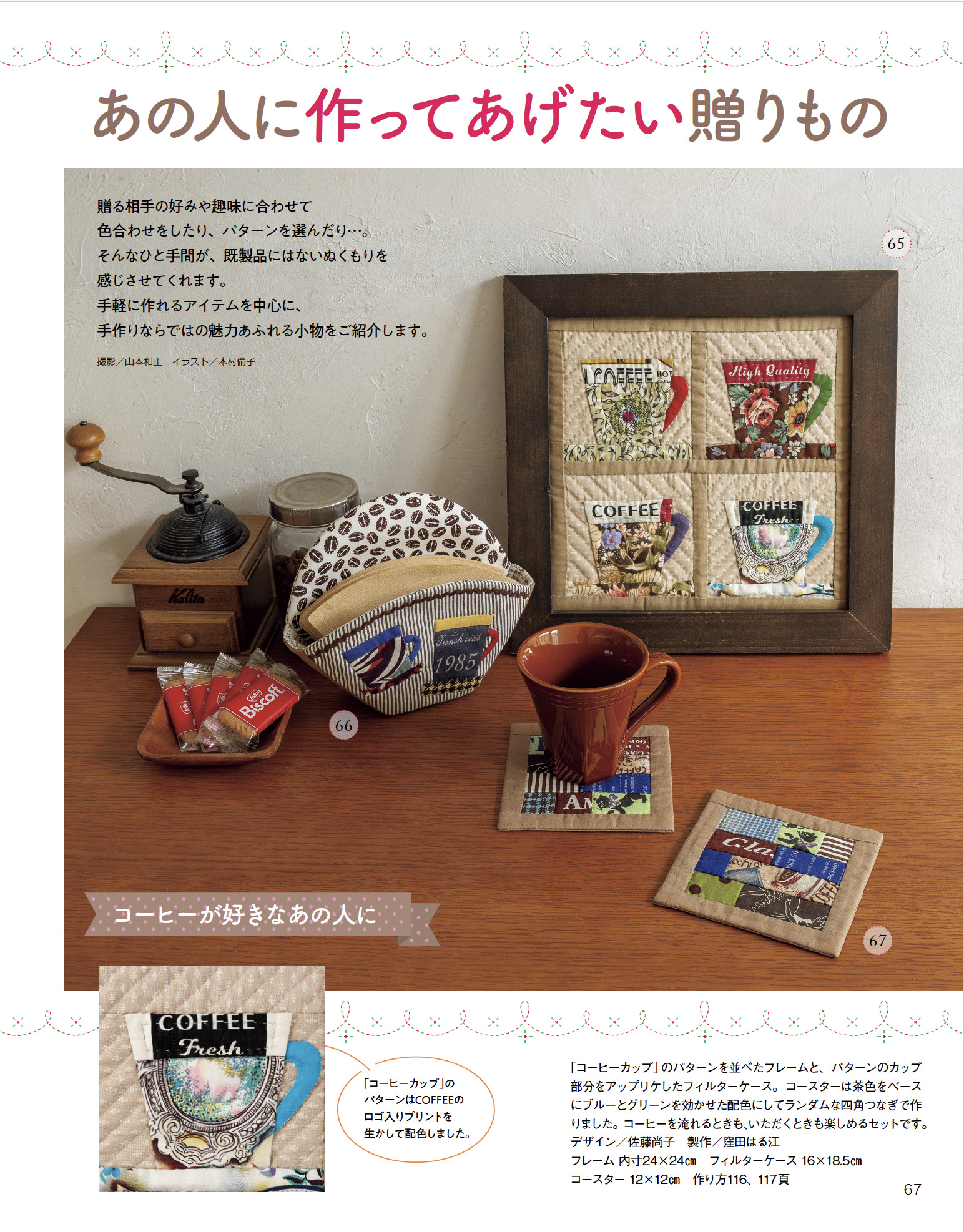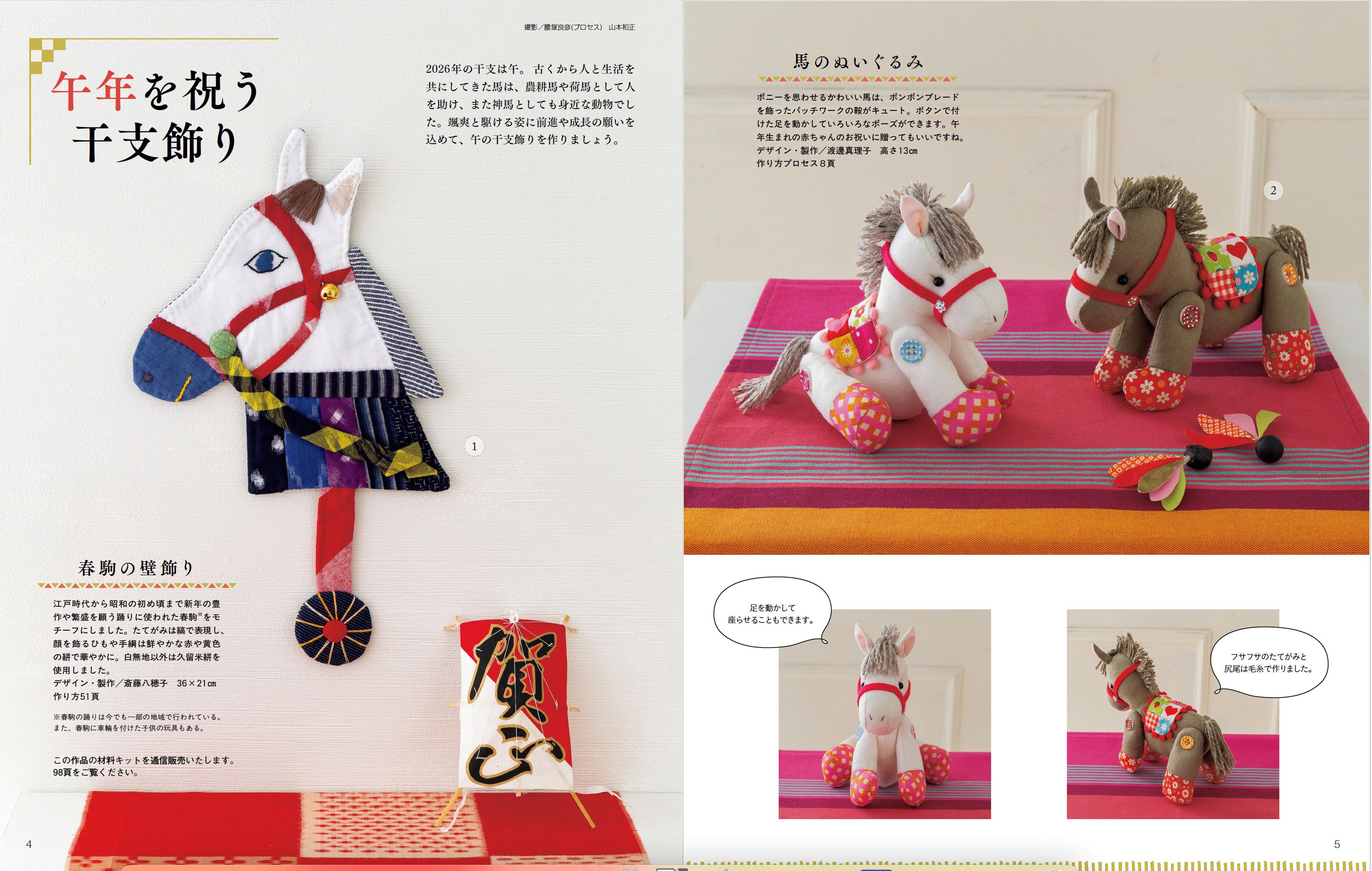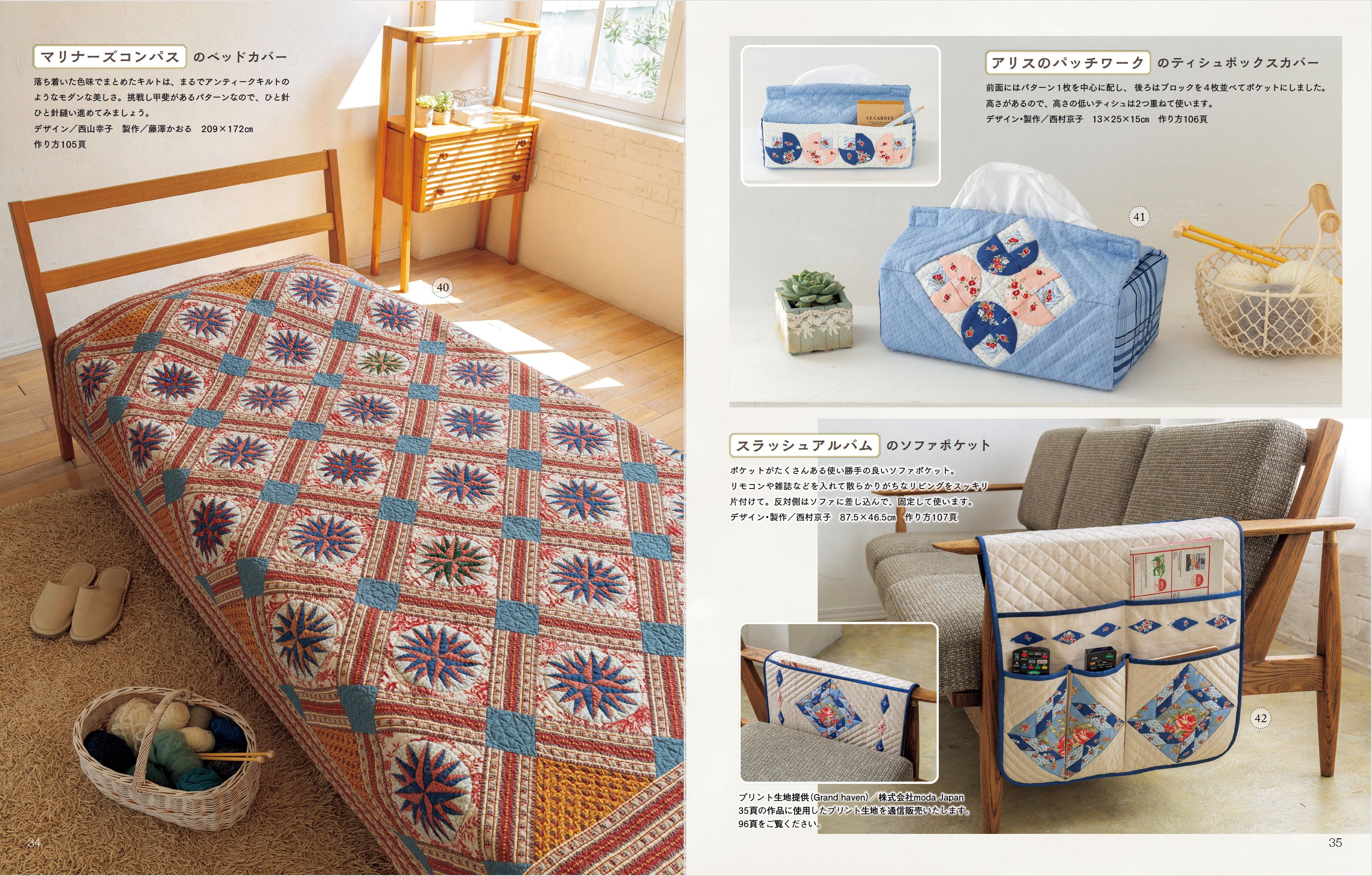 伝統パターンの魅力溢れる実用インテリアをはじめ、バッグ、飾りやすい小さなキルトなどバリエーション豊かにご紹介。干支飾りや歳時記キルト、花のフレームも見どころ。