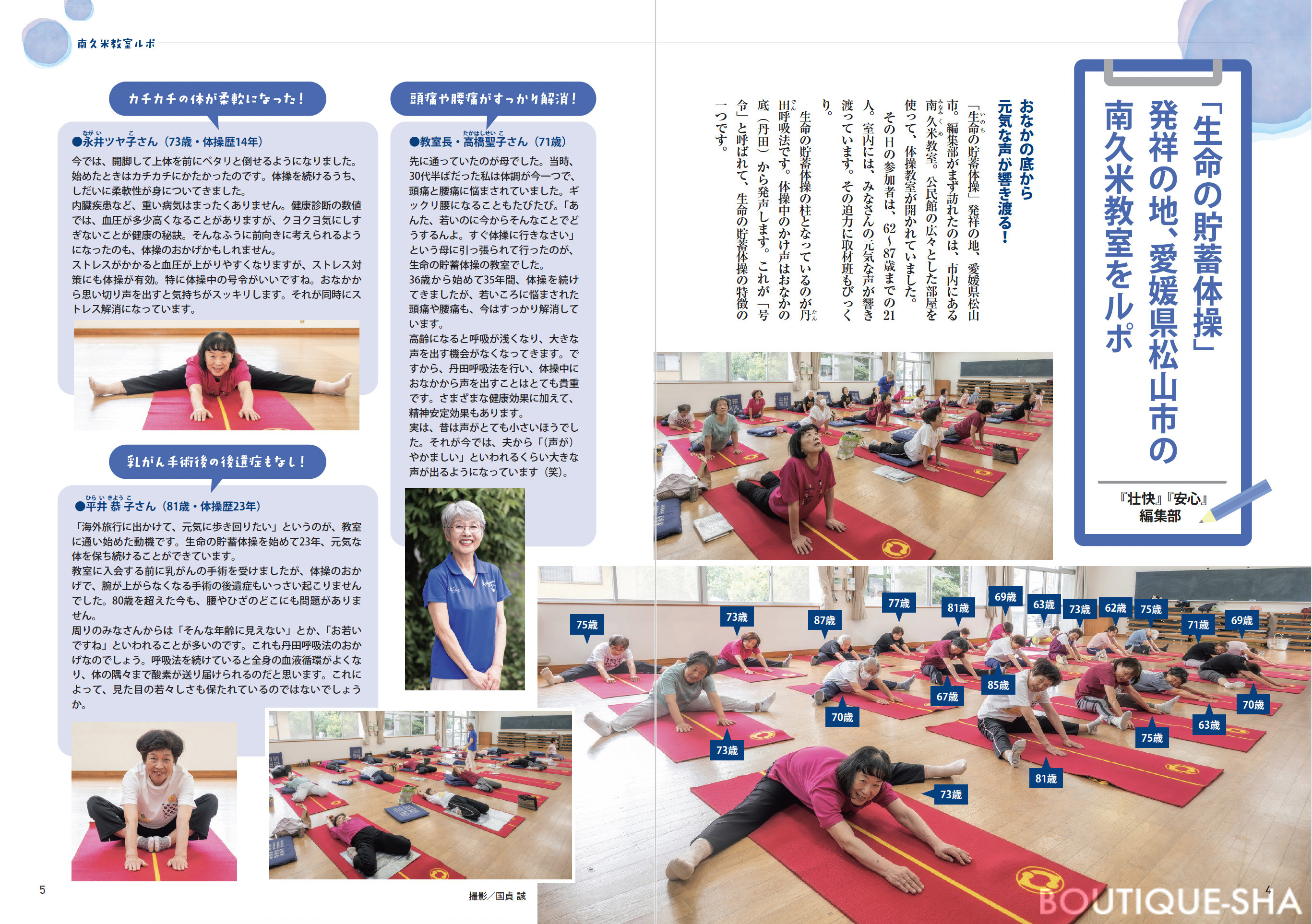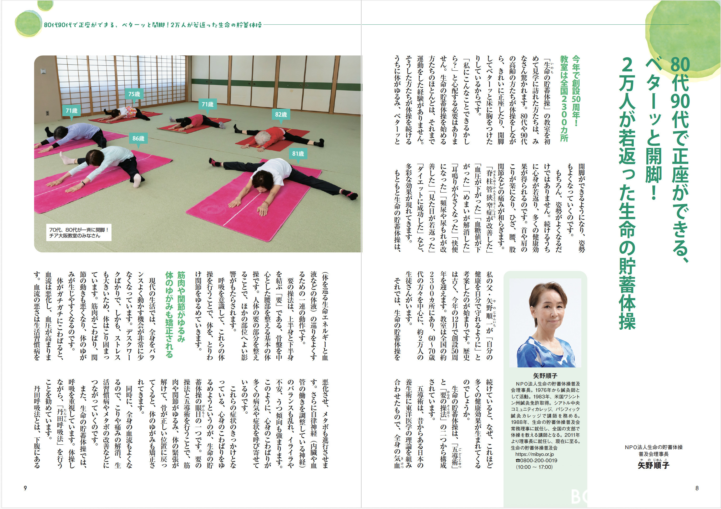 今では、発祥地である愛媛県松山市より全国に広まって、約2300カ所に教室があり、小学生から100歳代まで約2万人の方が実践。多くの方々が見違えるほど健康になり、元気に若返っています。