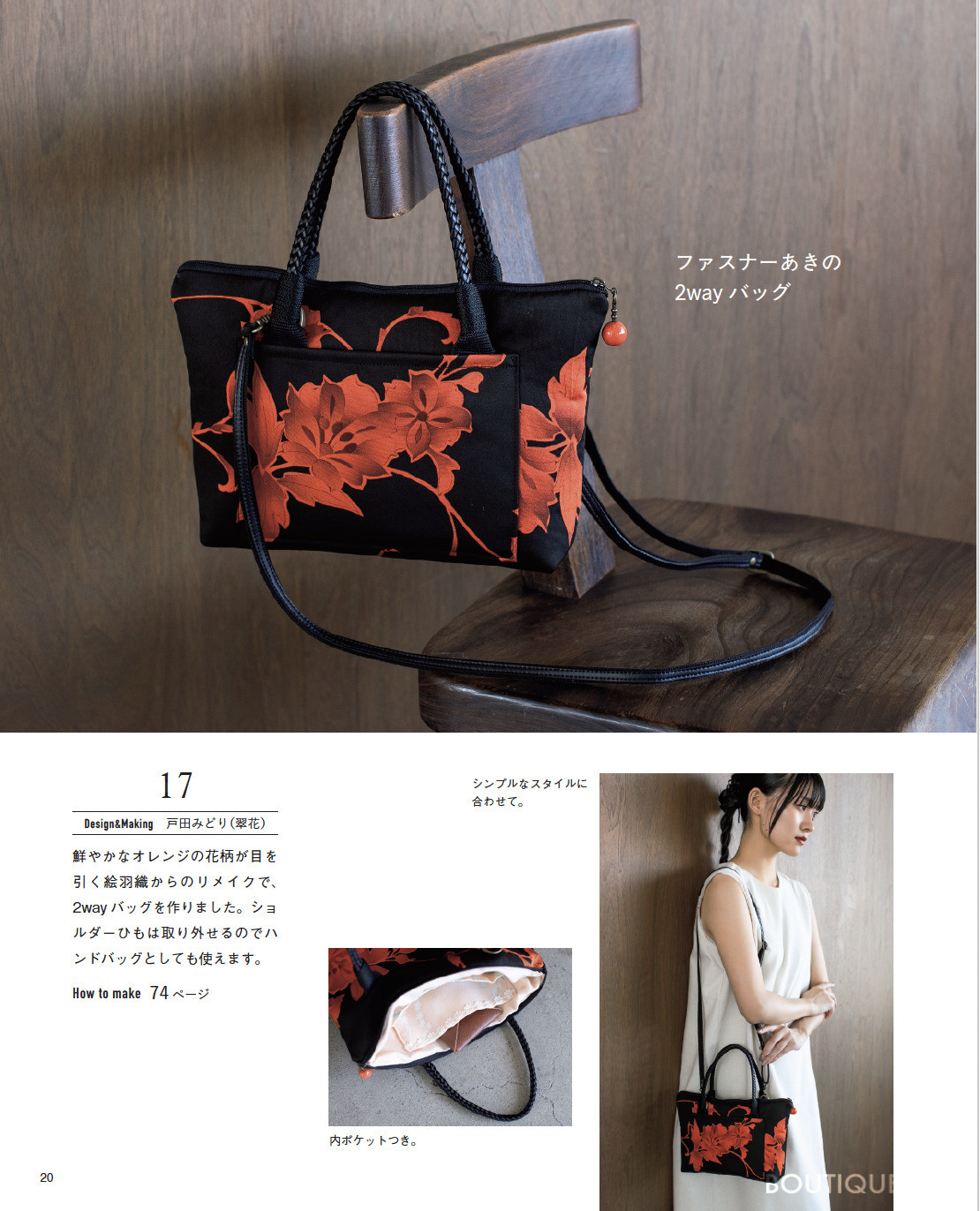 着物をほどいて洋服や小物に作り替える、着物リメイクが楽しめる1冊。思い出の詰まった大切な着物やアンティークショップで見つけた素敵な着物を、生活に寄り添う新しい姿として、バッグや小物にしてご紹介。一部実物大の型紙付き。