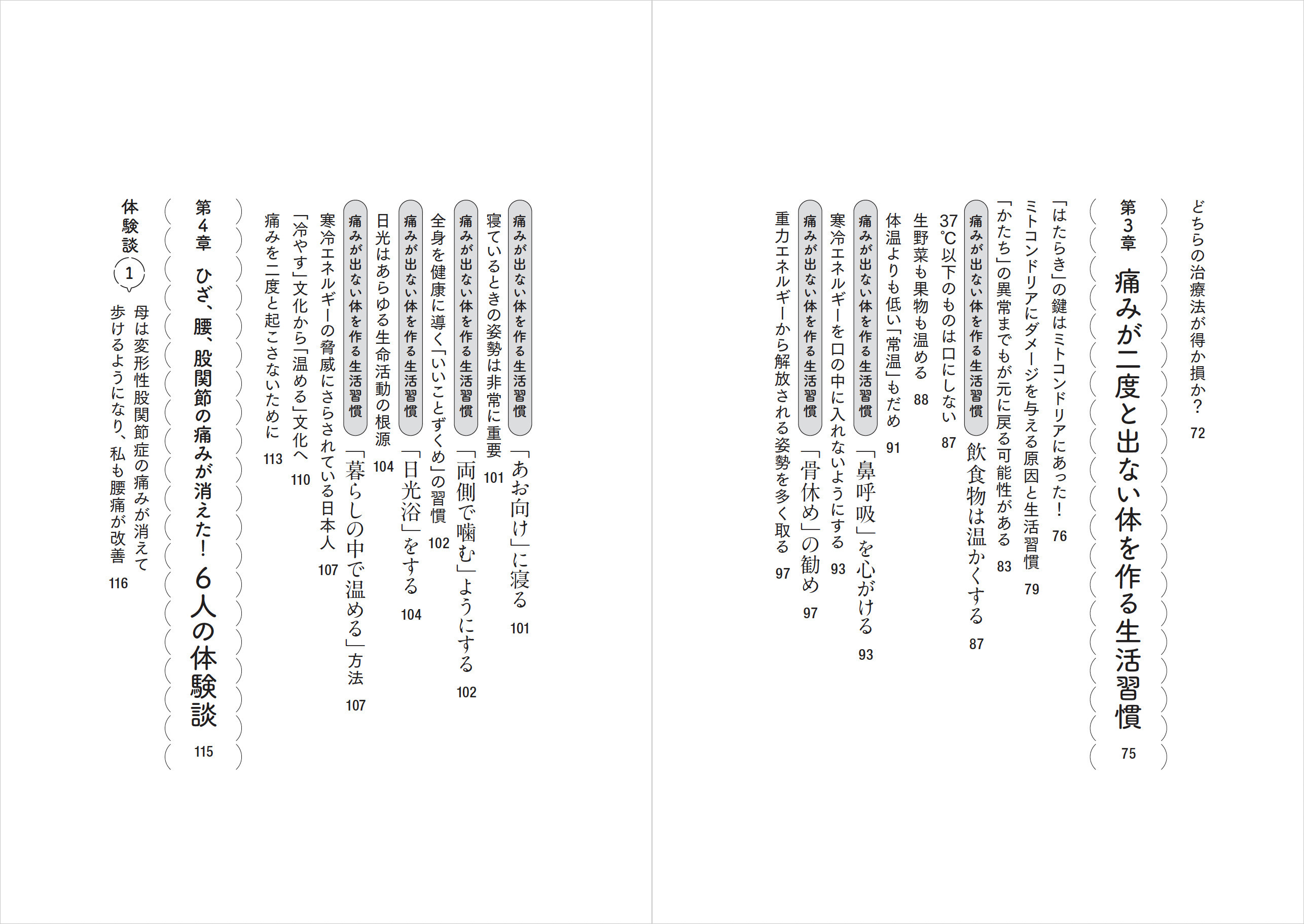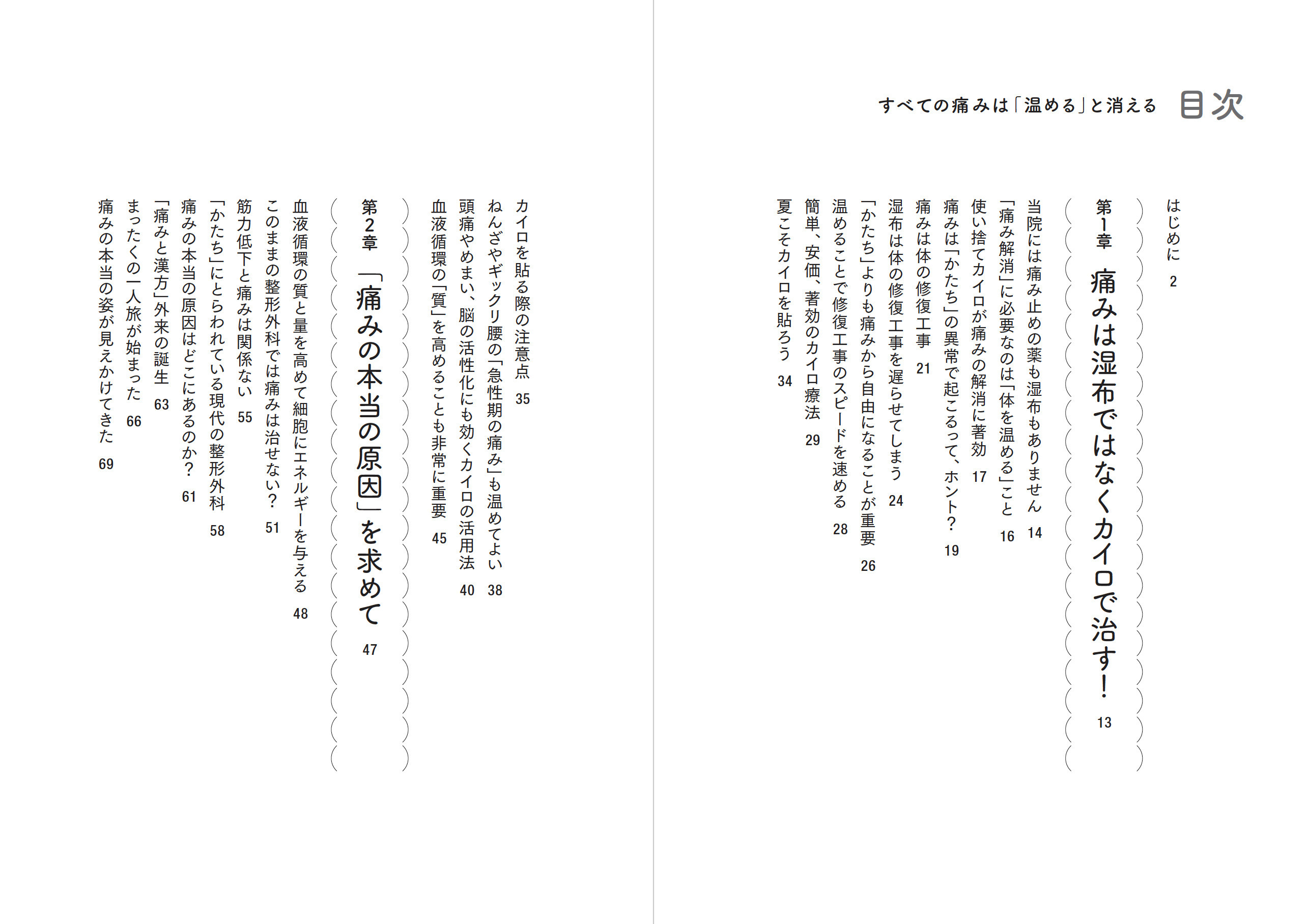 「当院には痛み止めの薬も湿布もありません」そう明言する整形外科医が勧める痛み取りの方法、それが「体を温める」こと。痛む部位には湿布ではなく使い捨てカイロ、温かい食べ物で体の中から温めるなど、目からうろこの痛み取りのセルフケアを紹介。