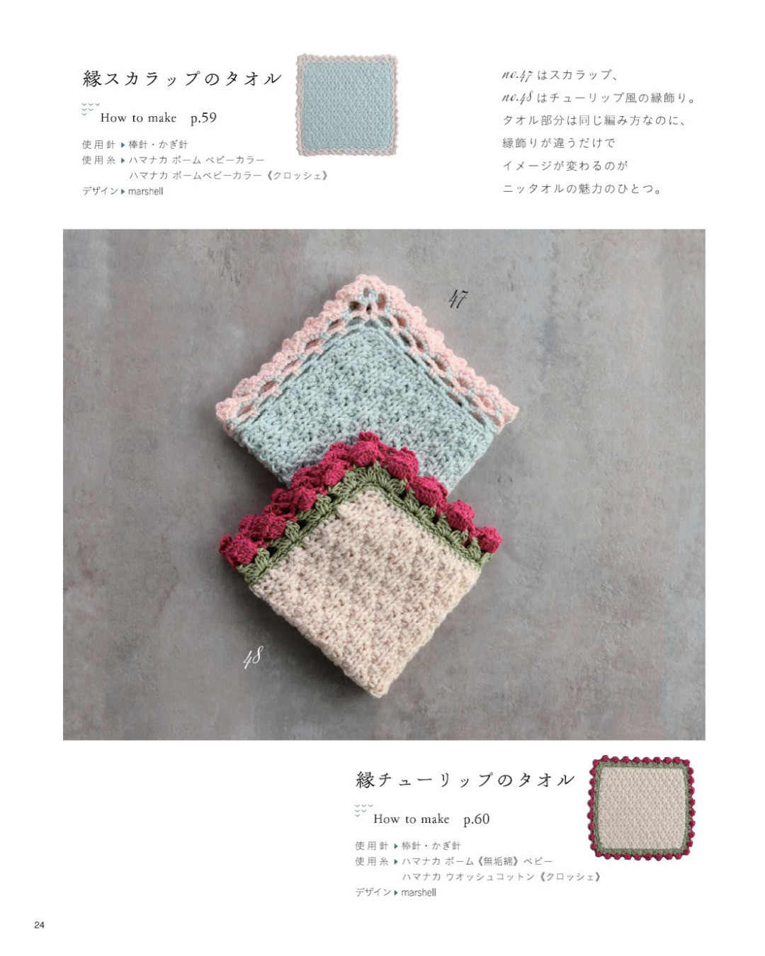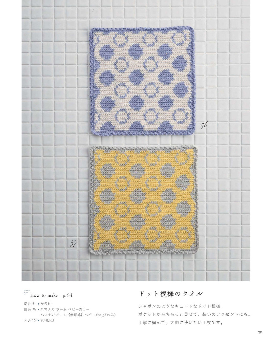 今話題の「ニッタオル」とはニットとタオルからできた言葉で糸を編んで作るタオルハンカチのこと。手編みならではの柔らかな肌触りとコットン糸を使用した高い吸水性で、日常的にハンカチと同様に使うことができるのが魅力。この本では編み物ビギナーでも気軽に編めるベーシックなメリヤス編み、細編みのものから、少し手の込んだ模様編み、編み込み模様のものなど編んで見たくなるデザインを全71点掲載。 (H102-266)