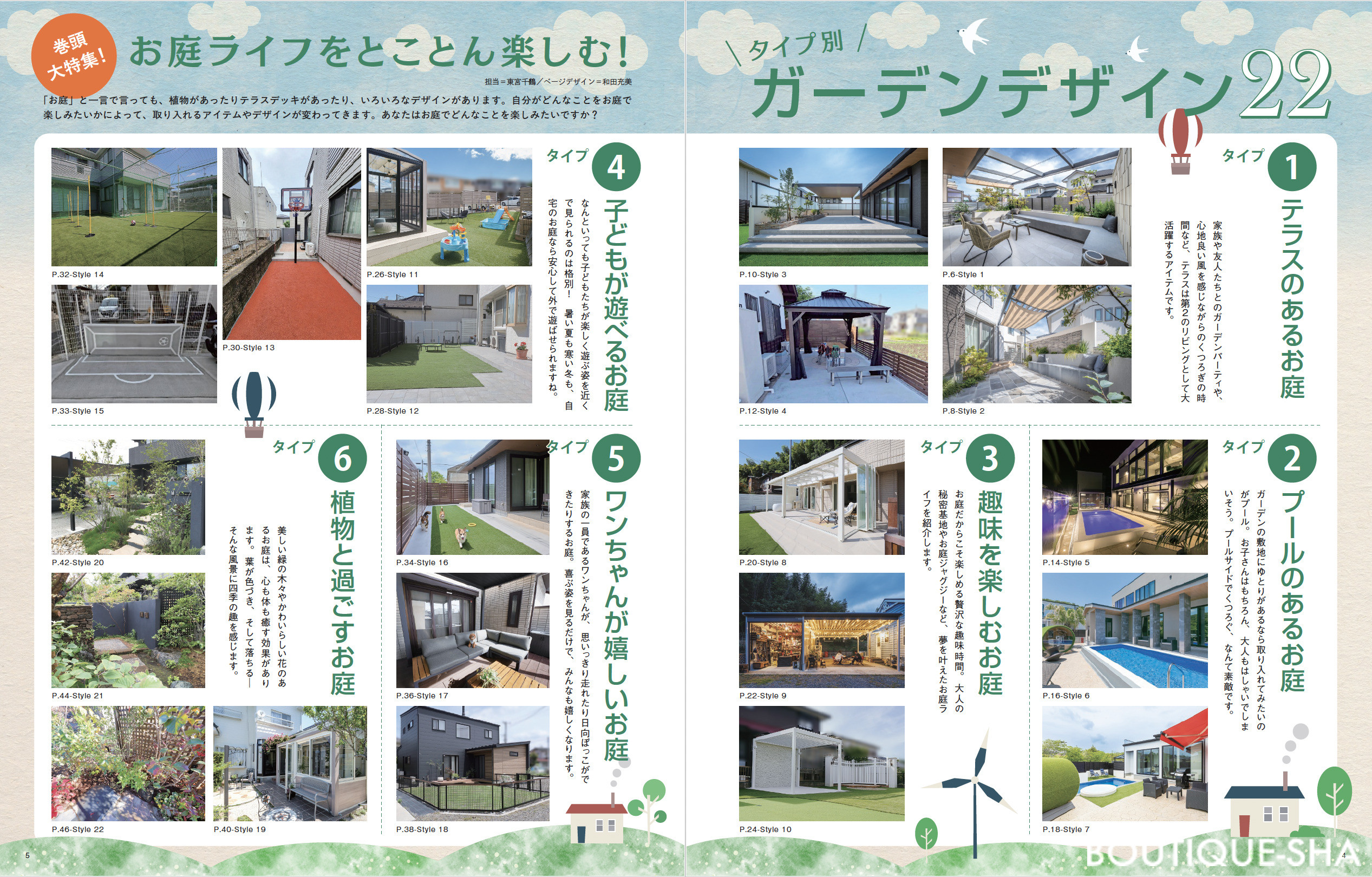 巻頭大特集は「外に出たくなる季節は快適なガーデンでもっと楽しく!」。「リフォームで過ごしやすいお庭に」や「屋根と日よけがあるテラス」「水を取り入れたお庭」など見逃せない企画が盛りだくさん!