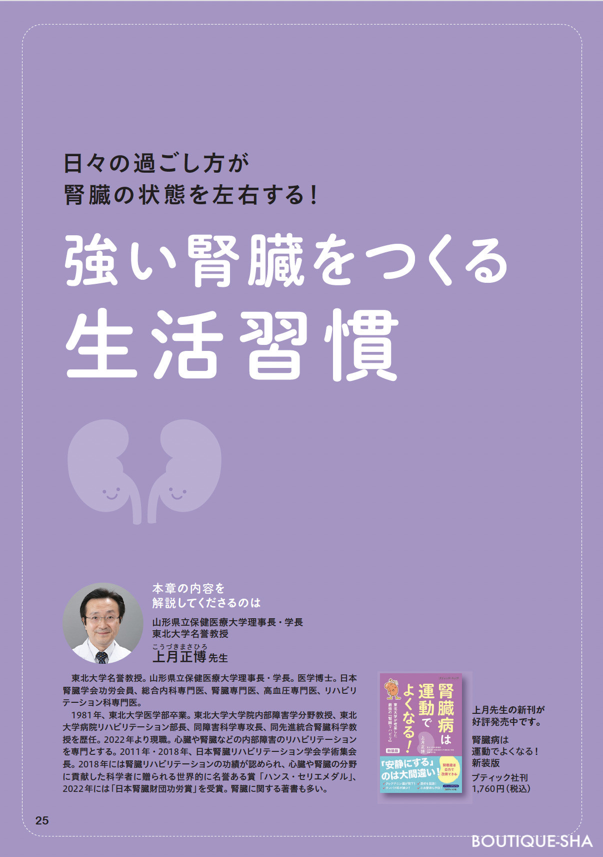 お使いの電子書籍ストアより「腎機能 100年もたせる強化術」と検索!