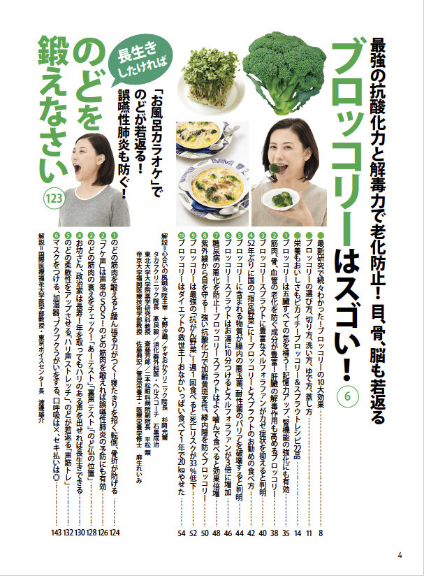 最強の抗酸化力と解毒力で老化防止!目、肌、脳、骨も若返る!「ブロッコリーはスゴい!」、 「レモン水」飲まなきゃソン!腎臓病、糖尿病、耳鳴りを撃退/元気に長生きしたければ「のどを鍛えなさい」/これは便利!70歳からの「スマホカメラ活用術」など